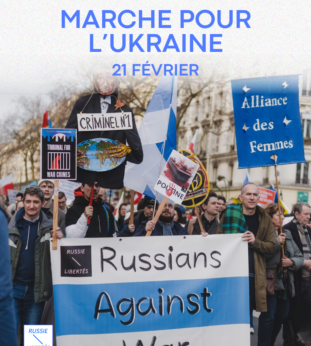 Le 23 février 2025, Russie-Libertés a été partenaire officiel de la manifestation Marche pour l’Ukraine à Paris, organisée à l’occasion du troisième anniversaire de l’invasion à grande échelle de l’Ukraine par la Russie. Plus de 10 000 personnes se sont rassemblées place de la République avant de défiler jusqu’à la place de la Bastille pour exprimer leur solidarité avec l’Ukraine et appeler à un renforcement du soutien international.